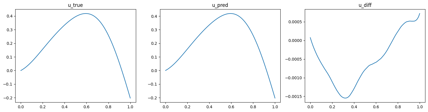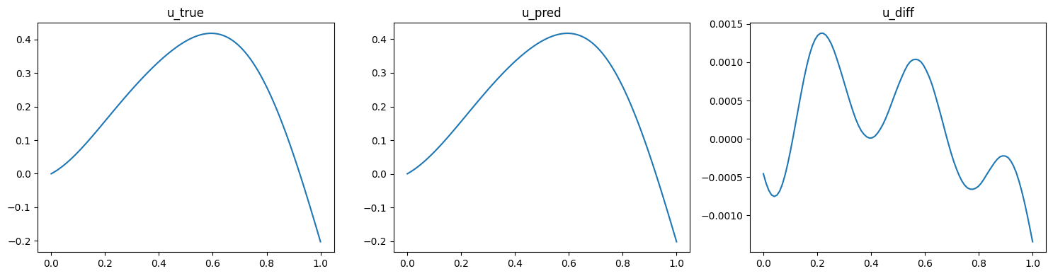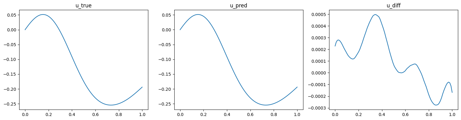 The validation results (ground truth, DeepONet prediction, and difference, respectively) are shown as below.