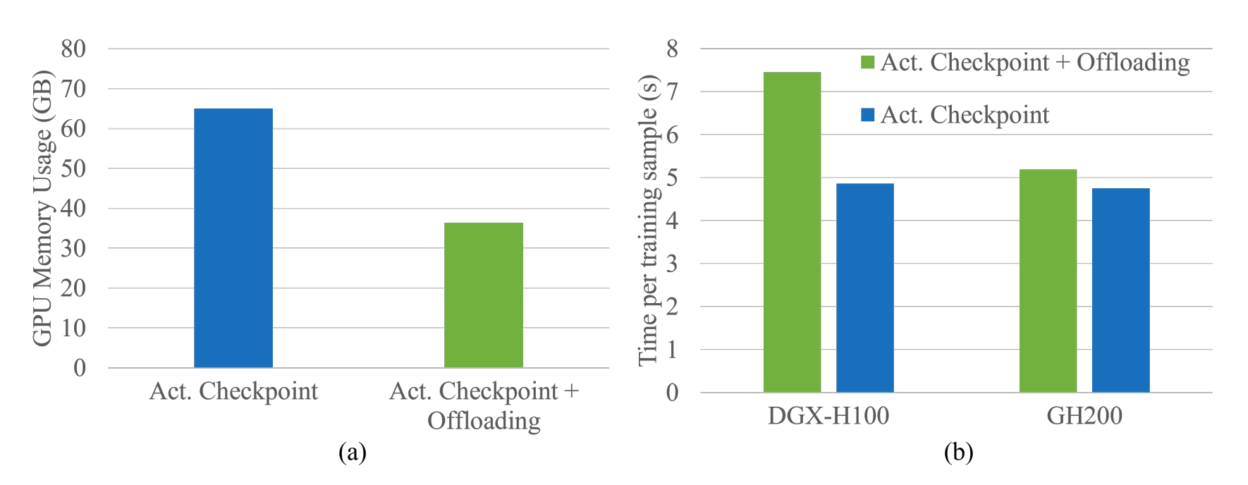 Memory and performance trade-offs between activation checkpointing and activation checkpointing with offloading#