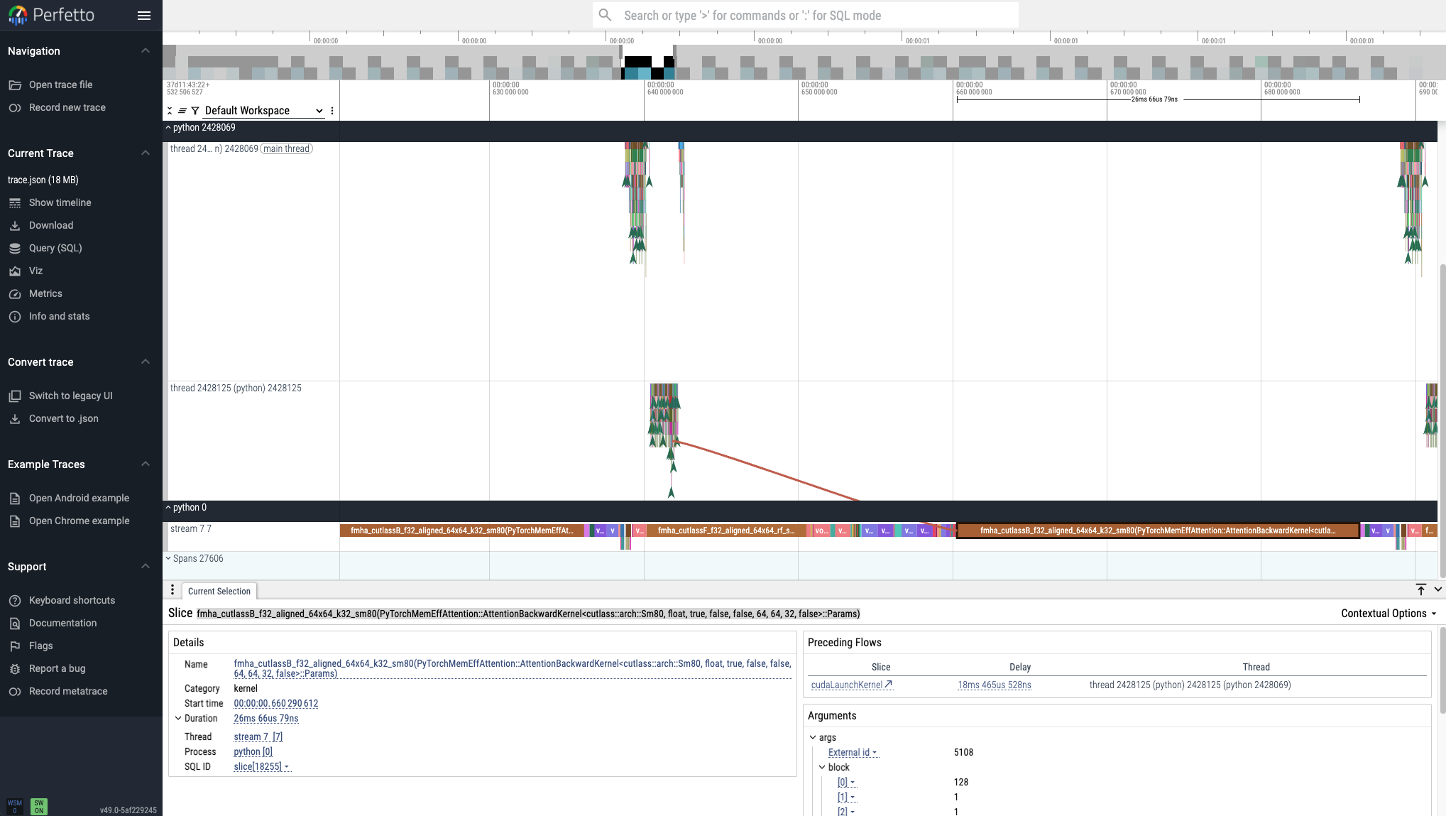 To look a little deeper and see what is happening in the attention steps as well as the backward pass, we’ll need different tools that have access to under-the-python-hood profiling techniques.