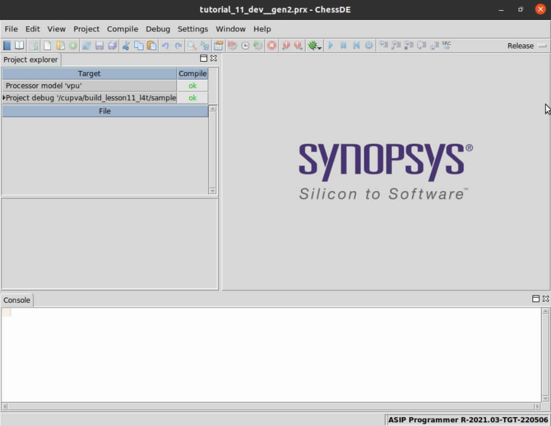 In ChessDE, we open the VPU Debugging Tutorial project that is running on the target.