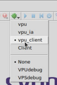 Click on the arrow to the right of the green debug icon and select vpu_client.