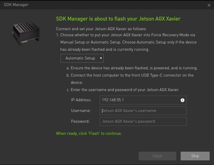 This section is intended to help you use the NVIDIA SDK Manager GUI to successfully configure your development environment.
