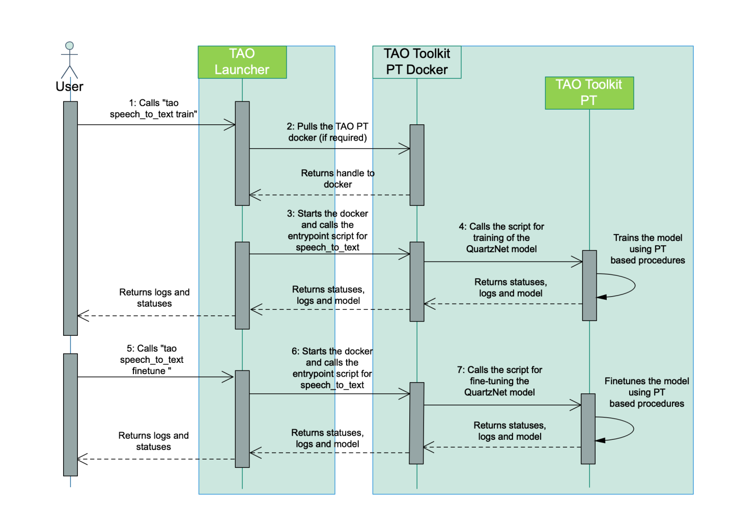 Similarly, the interaction diagram for training a QuartzNet speech_to_text model is as follows:
