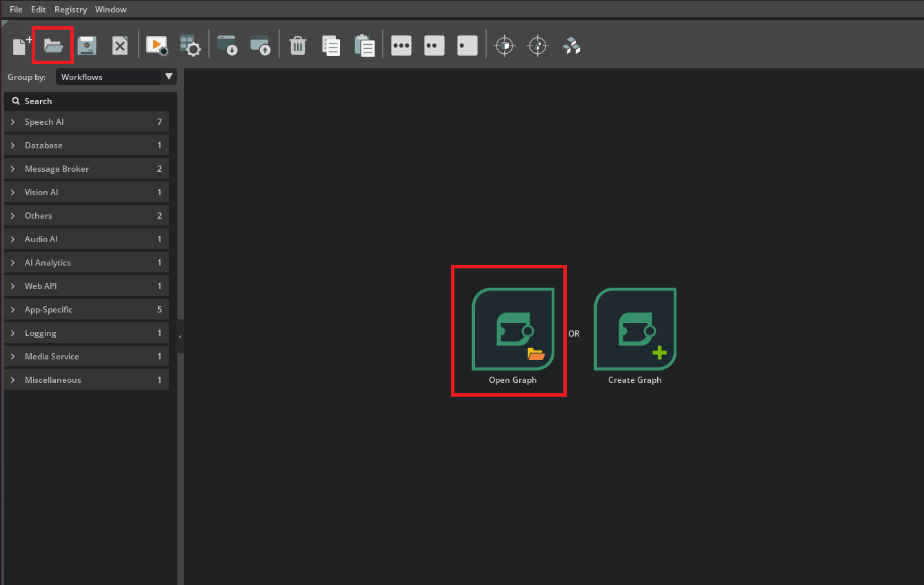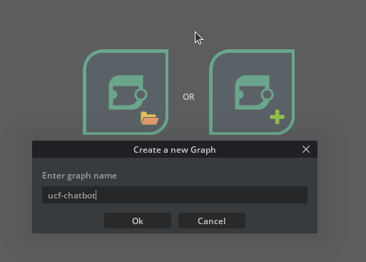 If the UCS Text Bot Application application graph is not already open, open it by clicking on the Open Graph button at the center of the application or Open Graph button on the action bar.