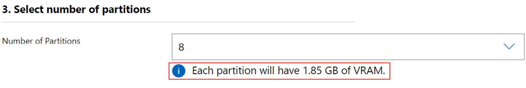 Select the available VRAM options. The value in this field must match the size of the partition count that you configured.