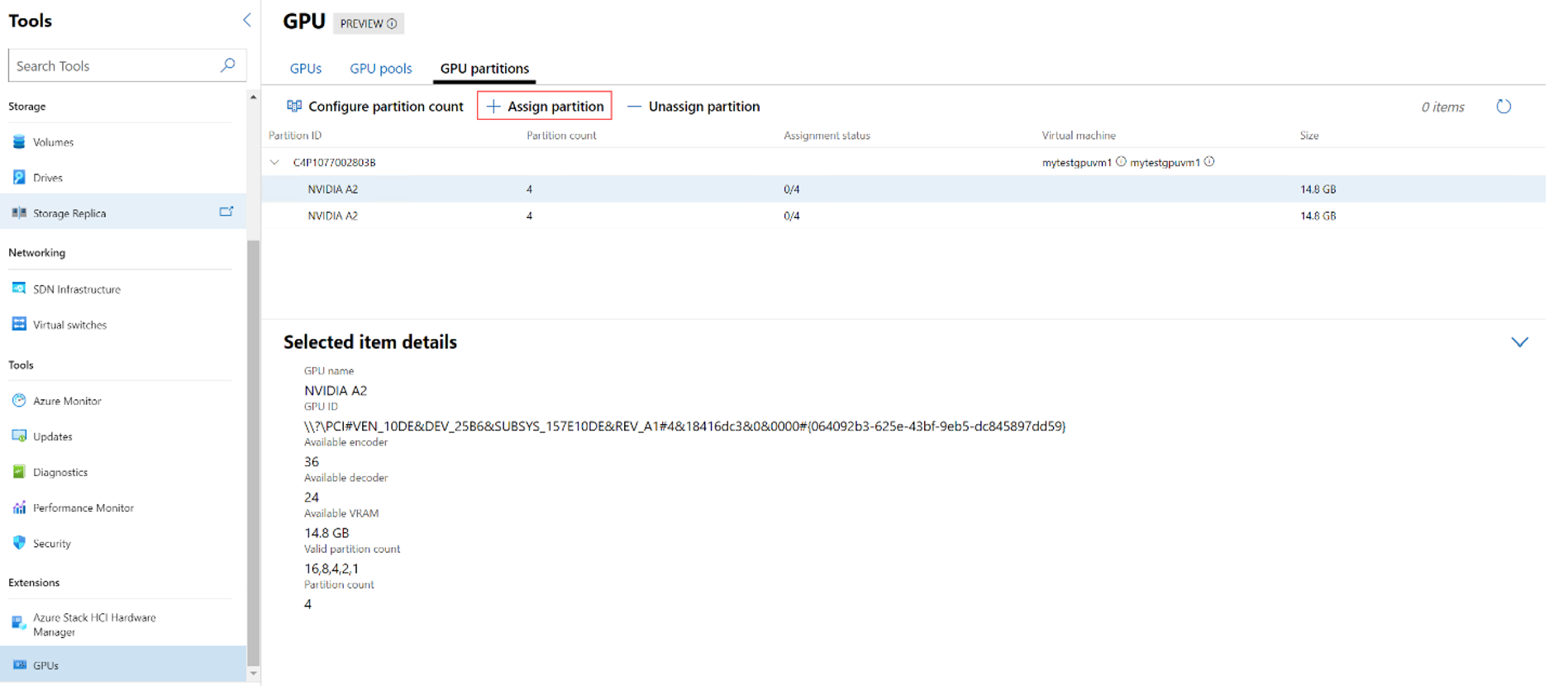Select Assign partition. This assigns a partition of the selected VRAM size to the selected VM on the selected host server.