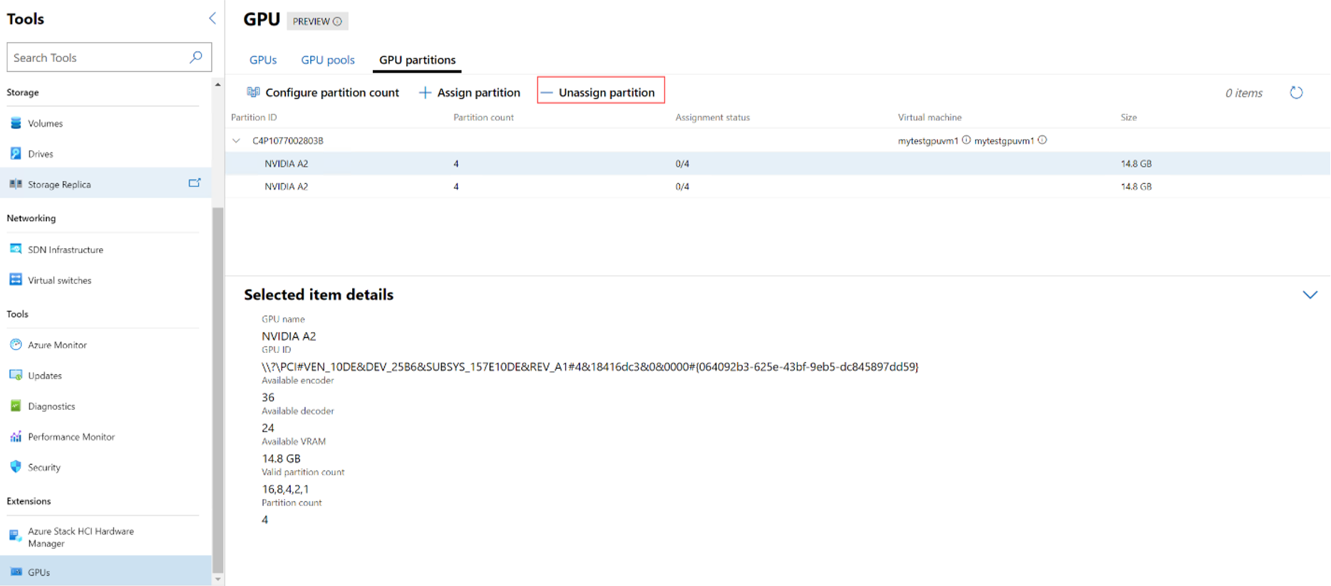 On the GPU partitions tab, select the GPU partition that you want to unassign.