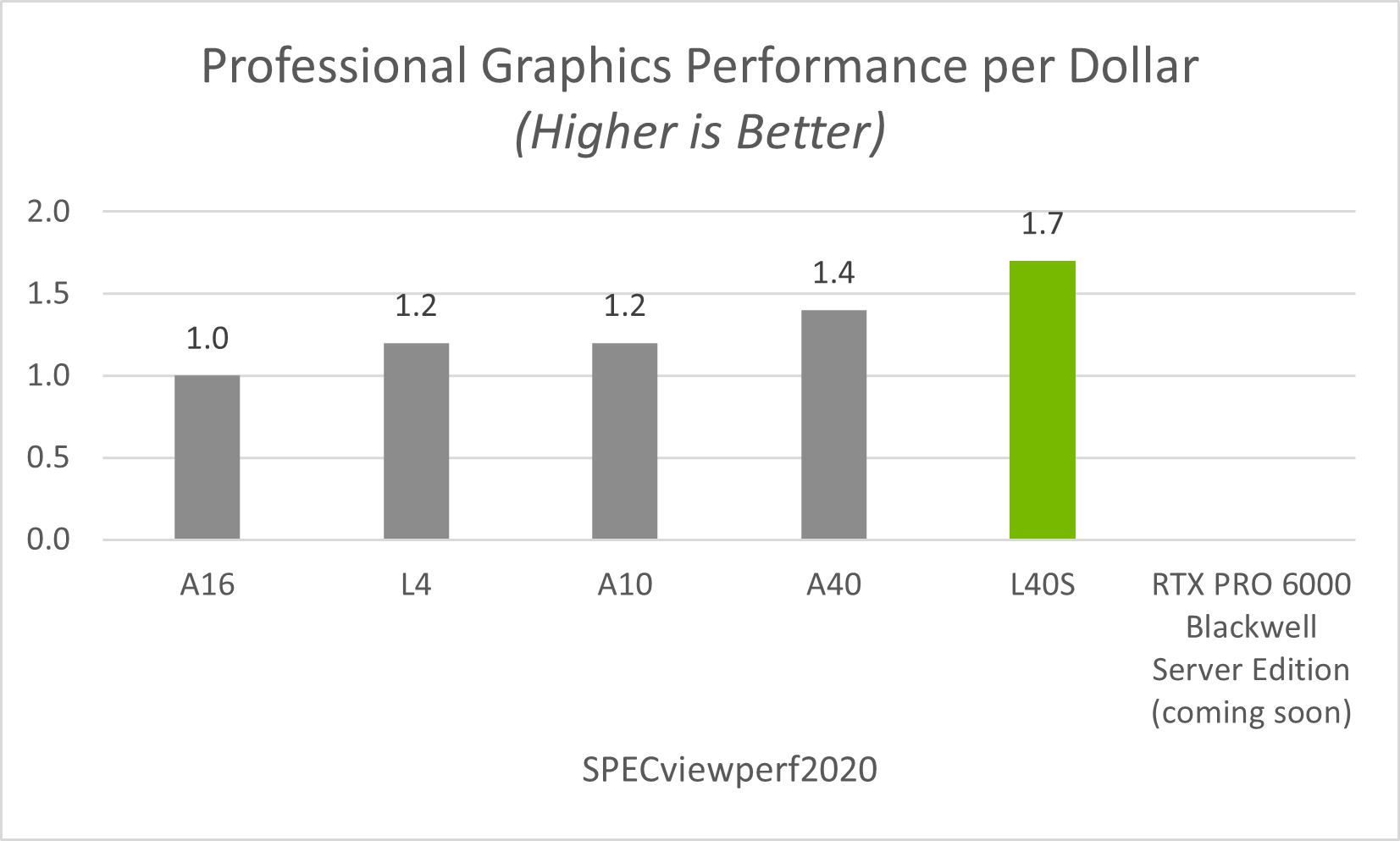 For professional graphics workloads, the principal factor in determining cost effectiveness is performance per dollar.
