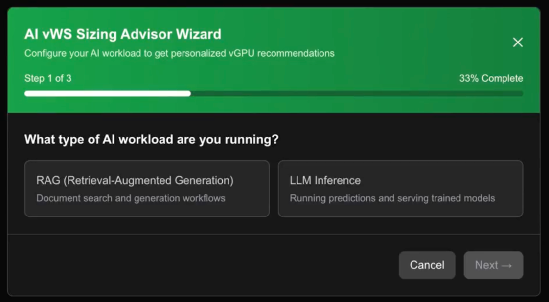 The NVIDIA AI Virtual Workstation (vWS) Sizing Advisor, powered by NVIDIA NeMo™, is a RAG-enabled tool designed to provide sizing recommendations for AI development running on AI Virtual Workstations. This free tool assists IT professionals in determining the optimal virtual GPU resources and VM configurations necessary for AI development projects, considering factors such as AI model, quantization, and other specific requirements.