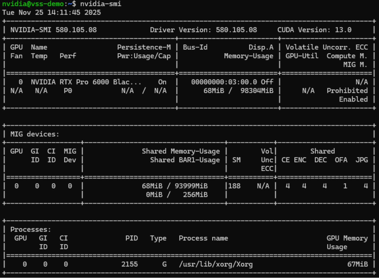 nvidia-smicommand to verify the driver has been installed correctly. Be sure to license the virtual machine.