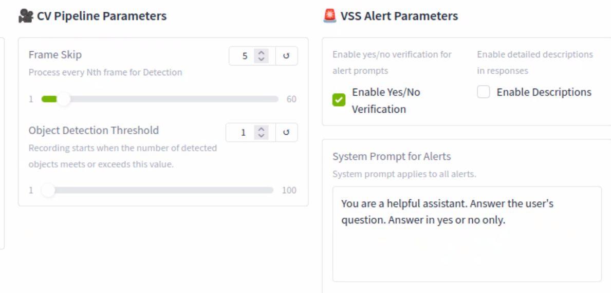 Frame Skip - With the current setting, the CV model will be inspecting every 5th frame or every 5 seconds. This can help speed up the processing time, but if set too high, it could potentially miss an event