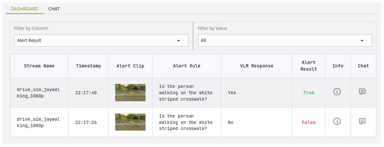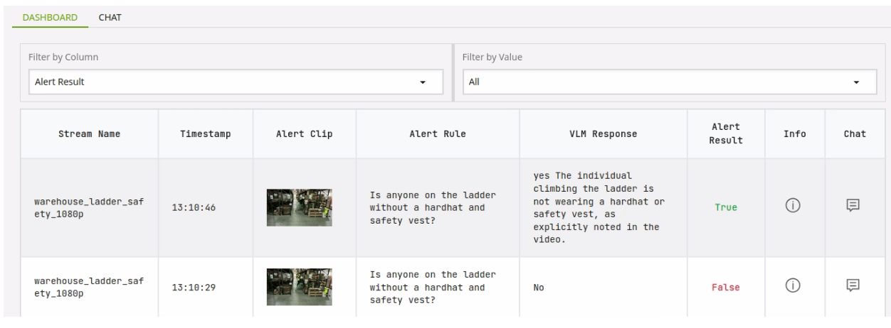 You can see we have a more detailed description in the VLM Response column with information on why the alert resulted in a true response.
