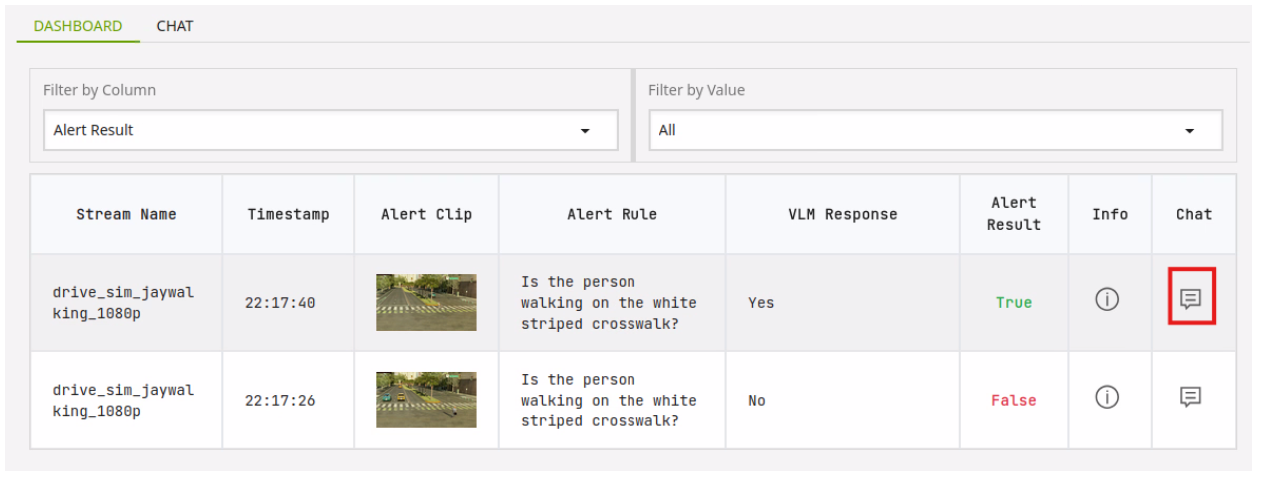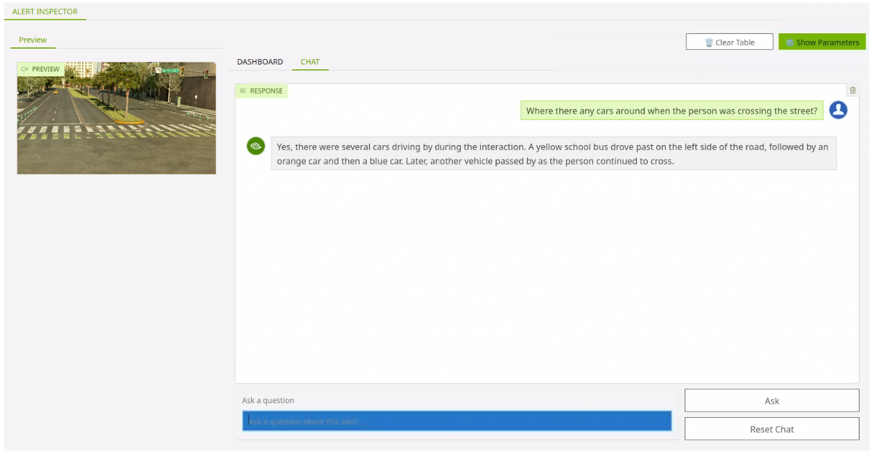You can click the chat icon to see a short clip of what triggered the alert and ask questions related to it.