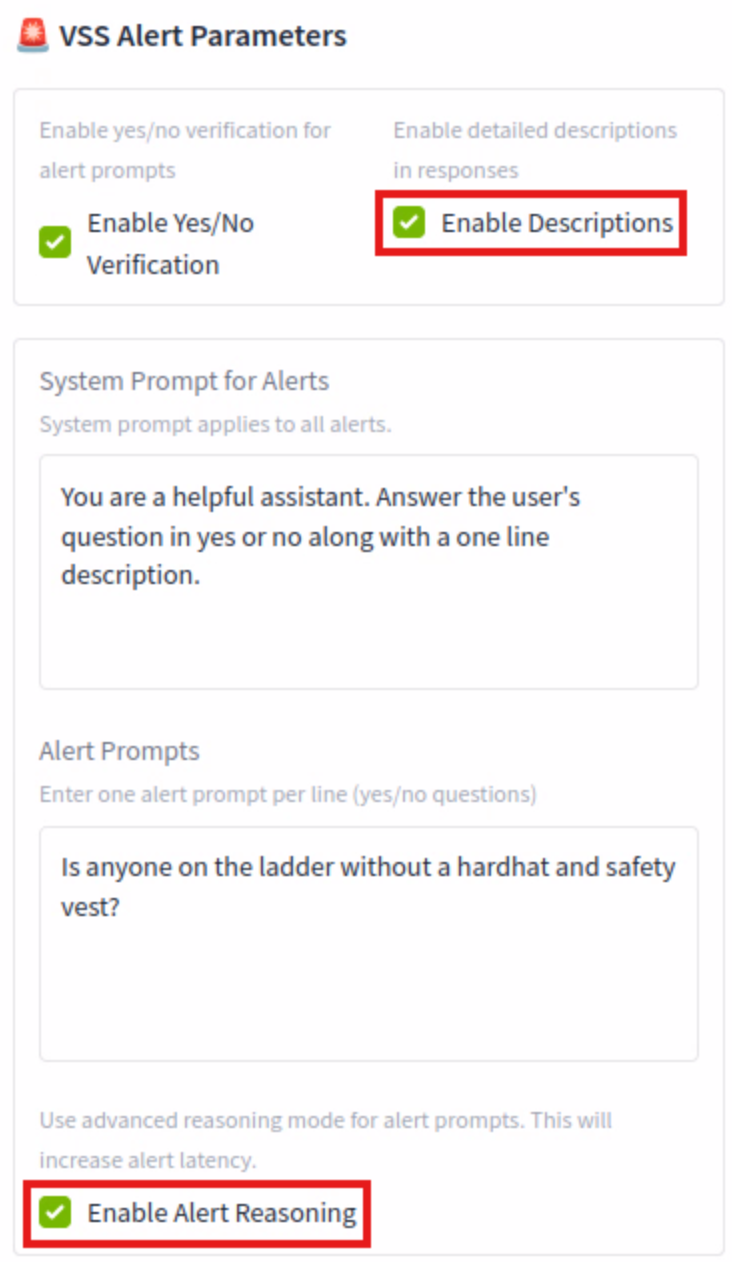 Enable Alert Reasoning (leave unchecked) - This allows the system to not only detect an object but to understand and narrate the context of an event, providing actionable insights and reducing the “noise” of irrelevant alerts. This will also add processing time.
