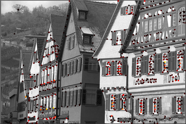 This application detects Harris corners from a given input image. The corners are then drawn onto the input image and the result is saved to harris.png.