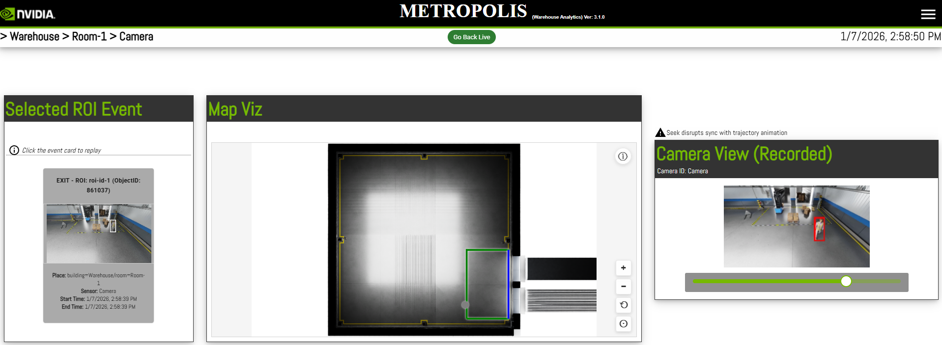 An example of an ROI event where a person (highlighted in red) exits the ROI is shown below in the Video Analytics UI using the event viewer: