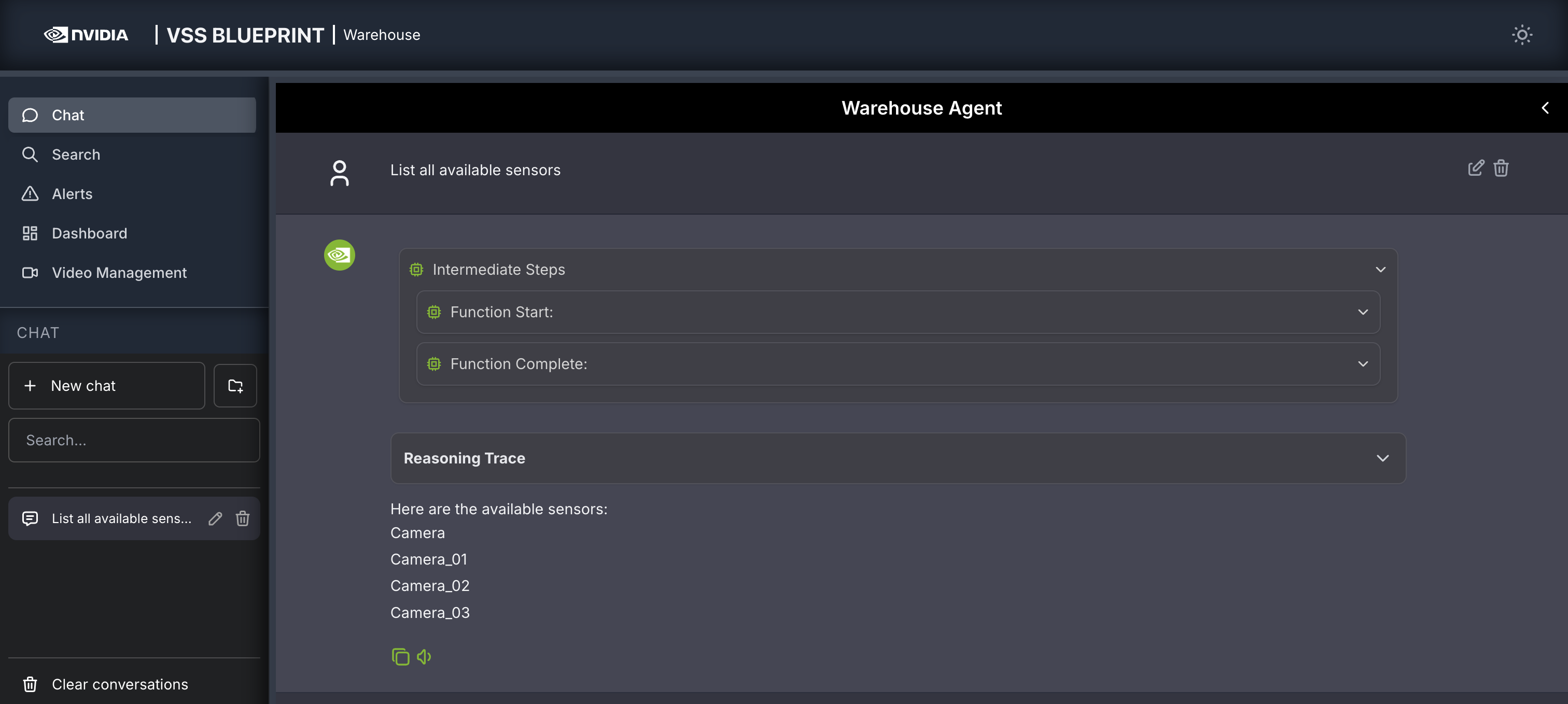 The Warehouse Blueprint incorporates an agentic AI system that provides natural language interaction capabilities for querying warehouse safety incidents, generating reports, and retrieving visual information from warehouse cameras.