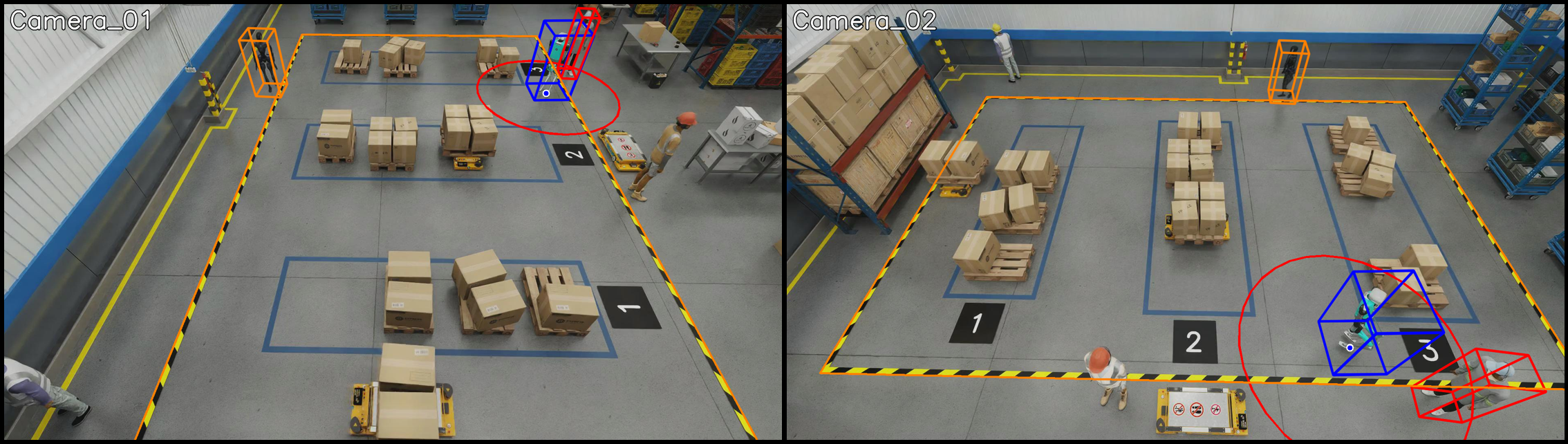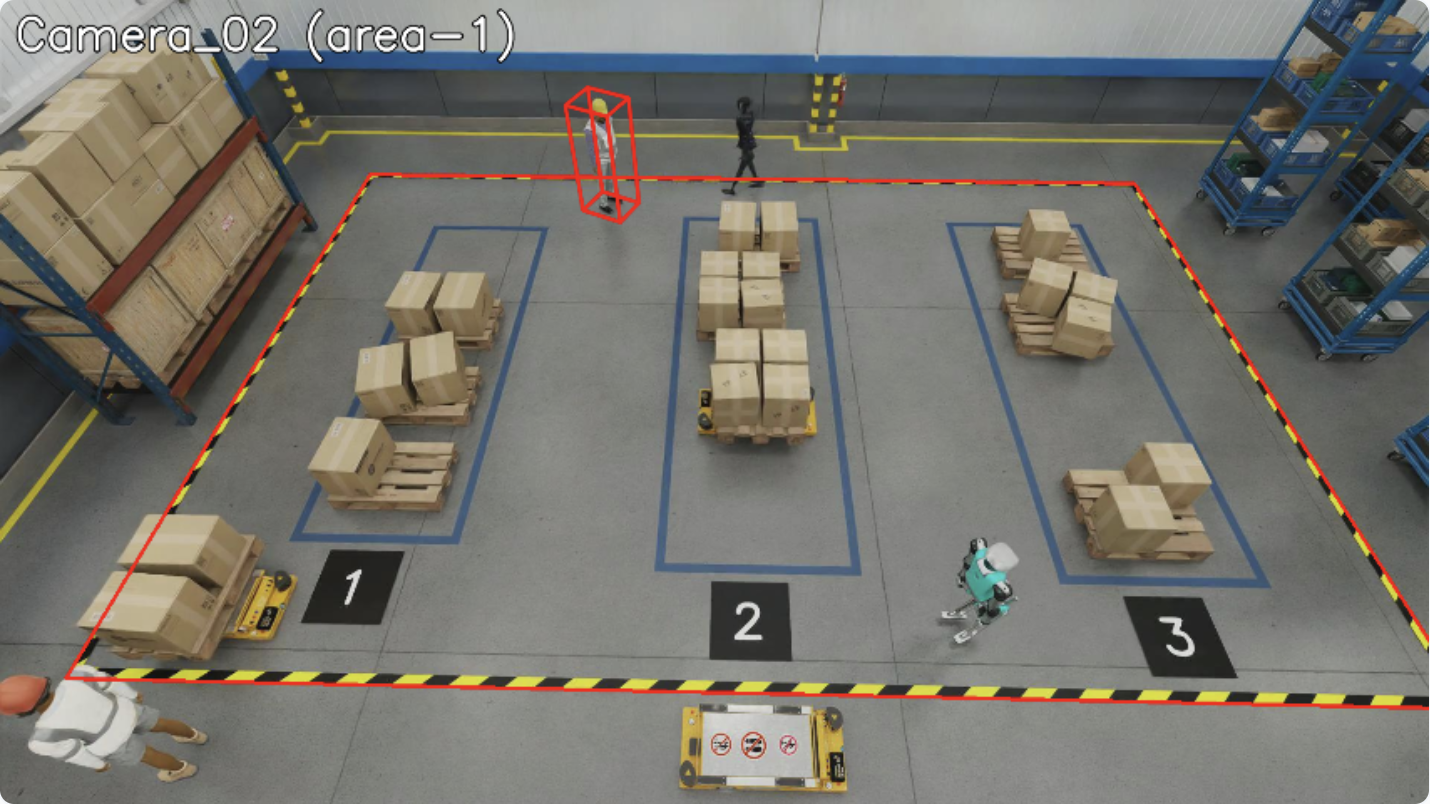 Incident Generation: Detects violations (proximity, restricted zone, confined zone, FOV count) and generates incidents when violations persist beyond configured thresholds.