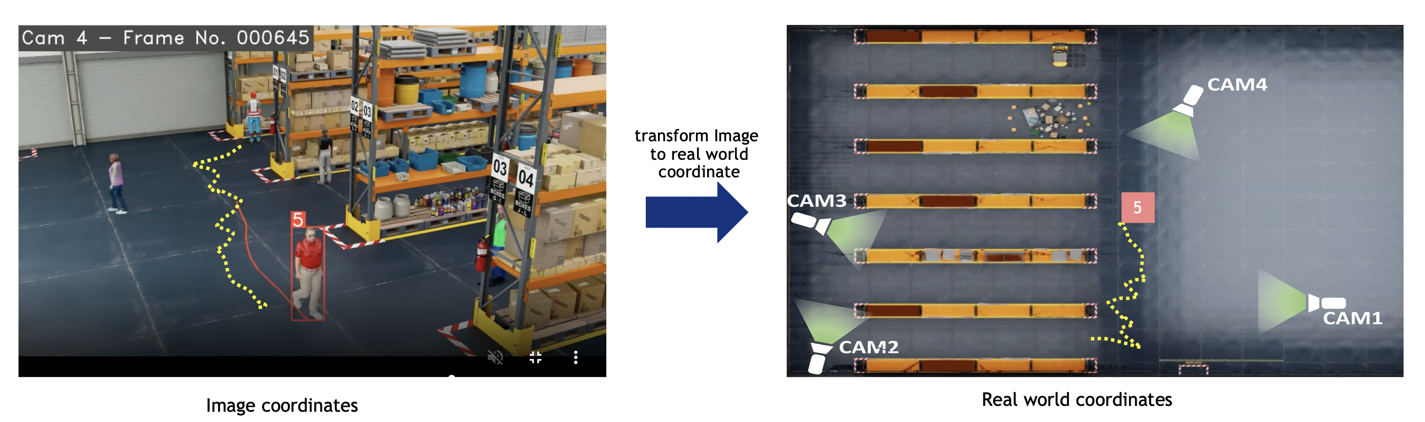 Image to Real World Coordinate: Transforms image coordinates to real-world coordinates (latitude, longitude) or other coordinate systems such as Cartesian. Also validates if points fall within defined Regions of Interest (ROI).