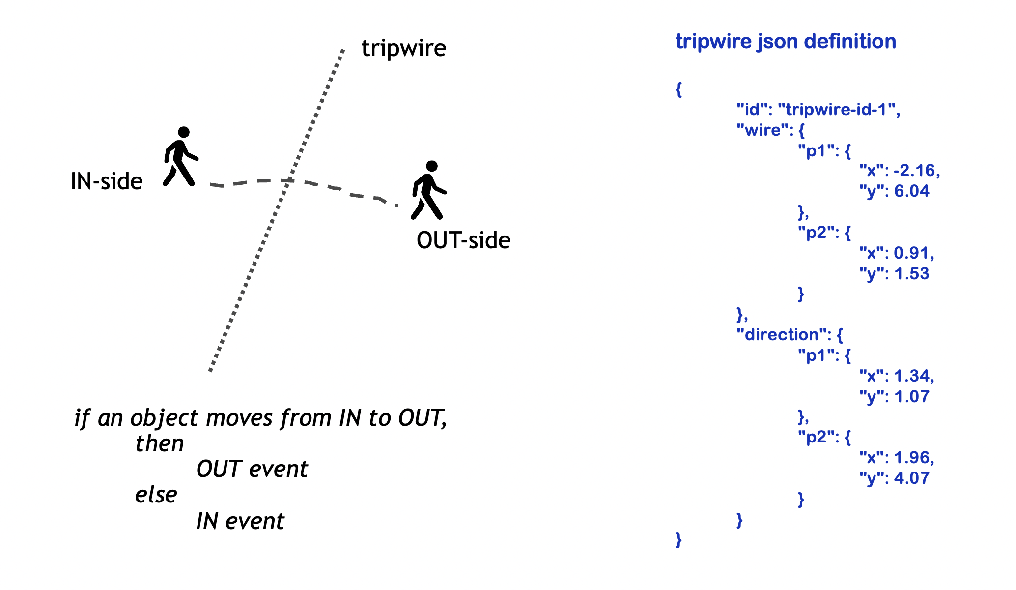 Generates trip events when a Person/Object crosses a tripwire Generates ROI events when a Person/Object enter/exit a ROI. |