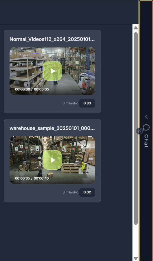 The Chat Tab supports uploading video files for analysis by the Agent.