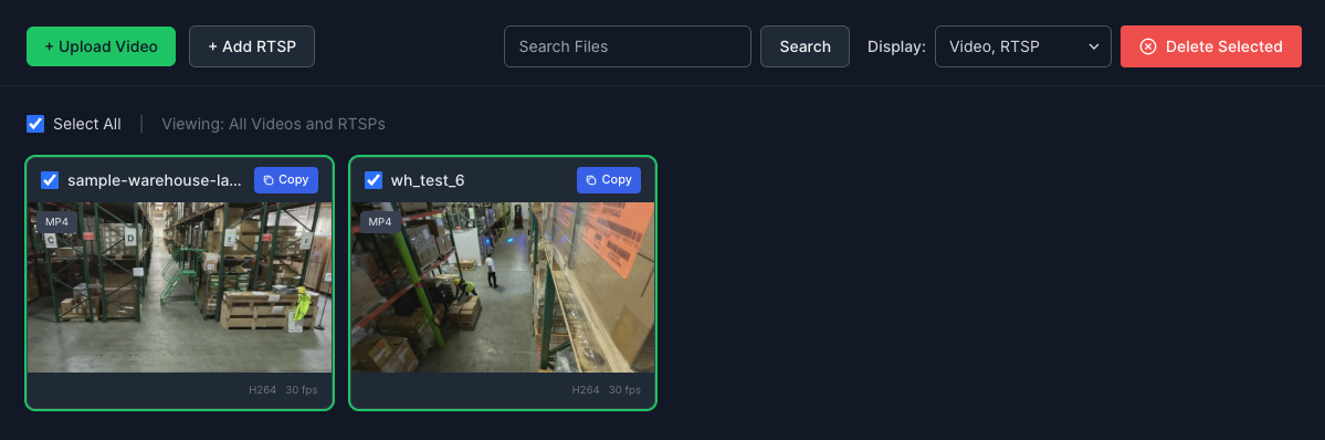 Note: The system uploads multiple files in parallel for faster processing. Successfully uploaded videos will appear in the streams grid automatically.