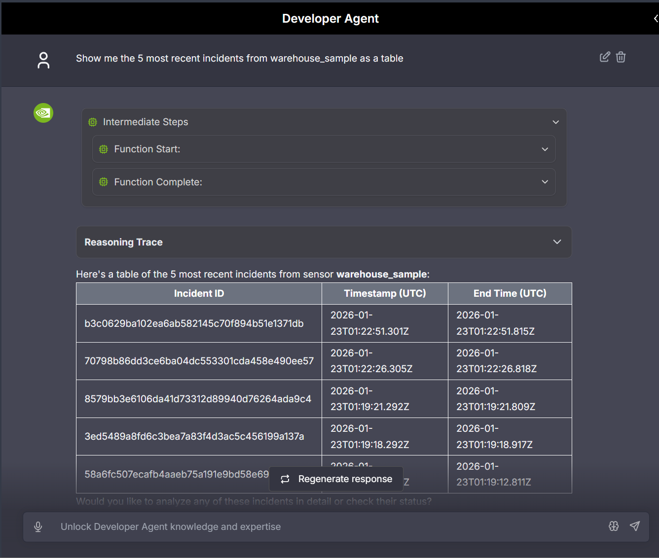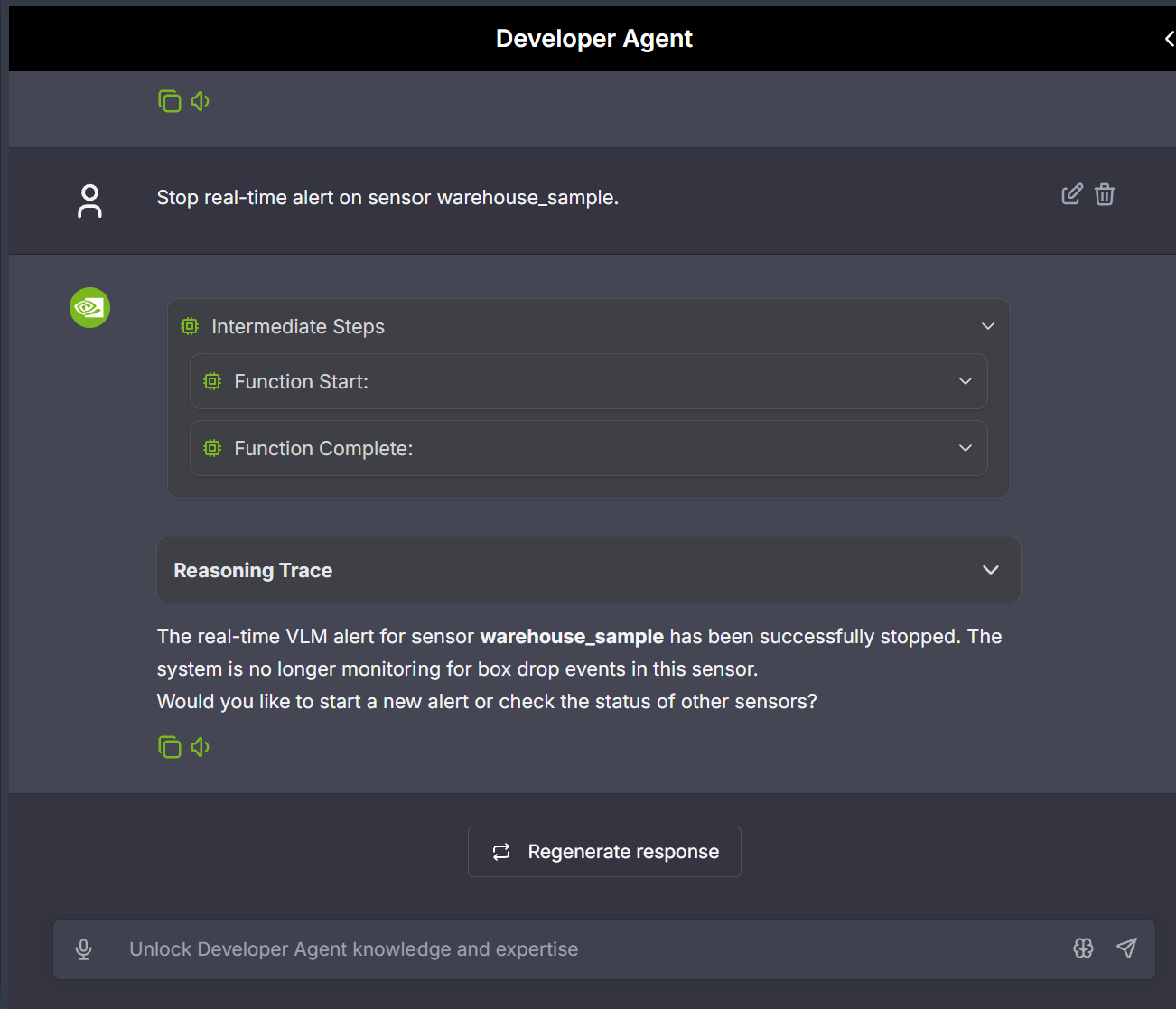 Sample prompt: Start real-time alert for boxes dropped on sensor warehouse_sample